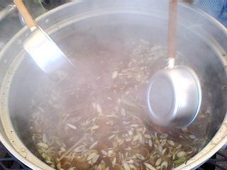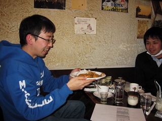 ☆一番右に座っている学生さん。東北大学に在学するシブヤ君です。気楽会や気仙沼ホルモンなどご当地グルメをテーマにした卒業論文の“取材”のため、わざわざ仙台から見学に来てくれたんです。遠いところ、ありがとうございます!