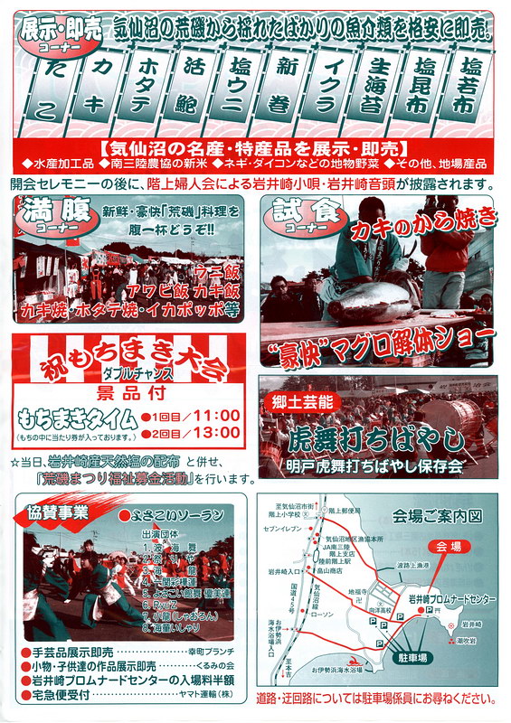 問合せ先 :0226-27-2300 (荒磯まつり実行委員会)