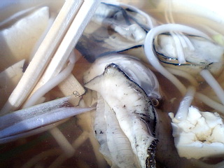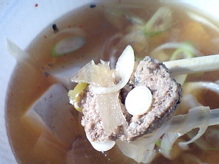 ぷりぷりの牡蠣が3つ入った牡蠣汁(しょう油ベース)