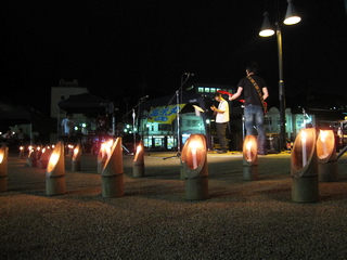 竹の灯篭が幻想的な雰囲気をかもし出す