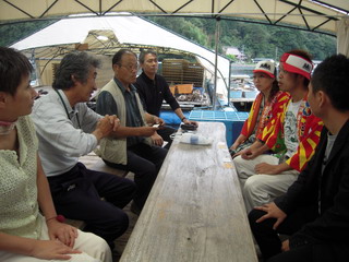 ☆まーしーが以前からお会いしたかったという畠山重篤さん(左から2番目)。ご存知の通り、「森は海の恋人」運動で知られる方です。今回、特別に貴重な時間をつくっていただき、マウマウの二人と海の自然環境などについて懇談しました。