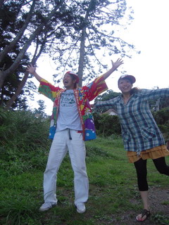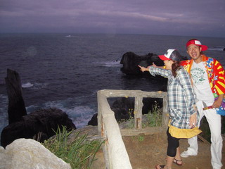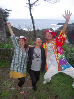 ☆参拝後、近くの岩場に移動。目の前に広がる唐桑の海に思わず絶叫する二人。