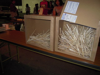 食べ終わった後、美味しいと思った方に、割り箸を投票するというシステムです。