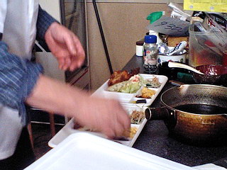 この日も忙しそうにマスターが配達するお弁当を作っていました。