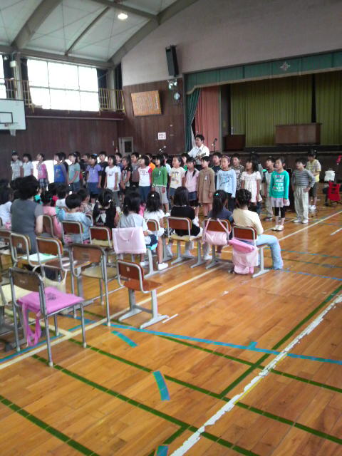内容は1年生と3年生とその父兄が一緒に音楽の特別授業を受けるというものでした。