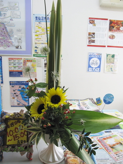 案内課名物、毎週すばらしい作品でデスクを飾る熊谷くんのアレンジです。