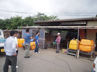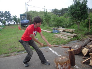 ☆気楽会メンバーも負けてはいません!釜で使用する「まき割」を体験しました!が、、。
