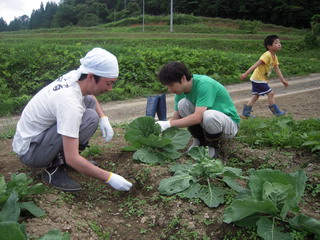 ☆午後からは、八瀬地区に移動して交流農園へ。除草作業に汗を流しました!