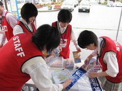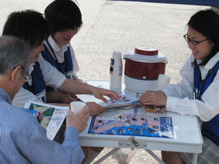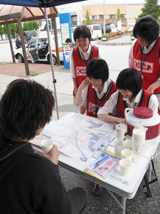 南駅の前にテントを建てて、観光案内してもらいます