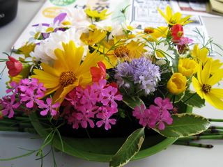 「花を買う時間が無かったので、庭に咲いてる花で作りました。」