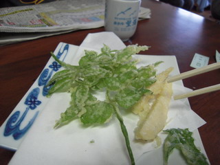 ☆地元で採れた山菜の天ぷら。これがまた、「うまいぞー!!」。味王(懐かしい?)もびっくりです。