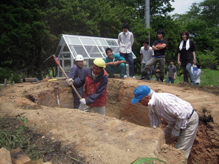 ☆実はこの日、学校の敷地内では地元の方々などによる炭窯づくりが行われていました!作業の様子を見学させてもらいました。