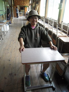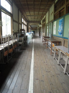 ☆廊下の様子。元気いっぱいの子供たちが、走り回っている光景が目に浮かびます。床はもちろん木造で、机やいすも残っていました。