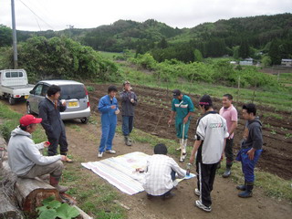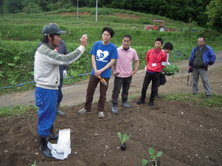 ☆まず、4Hクラブの齋藤君から作業スケジュールや苗の植え方などをレクチャーいただきました。