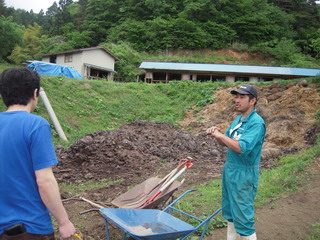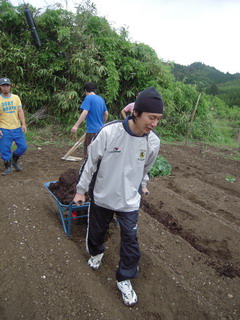 ☆一輪車で運ぶながはる君。力仕事も似合います。