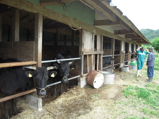 ☆「牛さん、こんにちは」。飼育されている牛舎も見学させていただきました。間近で見る牛はやっぱ迫力あります!