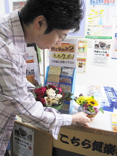 毎週鮮やかなアレンジを無償で持ってきてくれる熊谷君です。