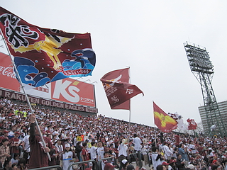鮮やかなファンの会の団旗は見事Kスタを気仙沼カラーに染めました!