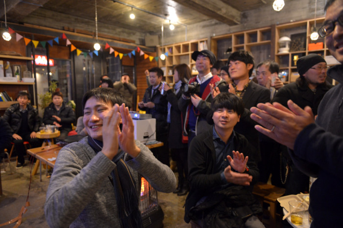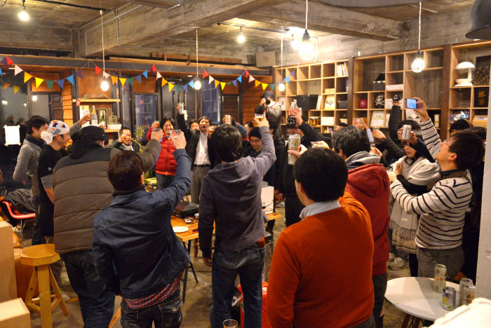 まずは乾杯から。これは二度目の乾杯のようですね。僕は遅れての参加となったんですが、こういう瞬間に間に合うことが出来て良かったです(^^)