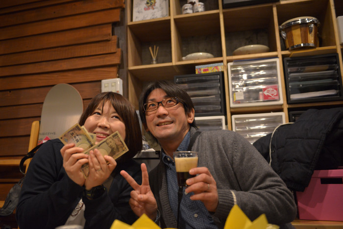 わくわくカップ、見事予想が的中し景品を手にしたのは、やっちの隣に写り込んでいる女性(^^)b