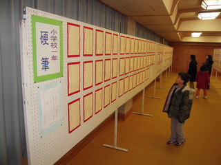☆最後に、夕方には息子が出品した市内小・中学校書初め展を見に、市民会館へ行ってきました。小学一年の今年、初めての硬筆ながら、学校の代表に選ばれ、書初め展に出展し、入賞しちゃったんです