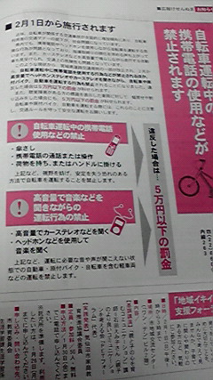 今回は、気温のことではないんですが、気仙沼市の広報を見ていて、2月から自転車で走りながら携帯電話の通話や操作が禁止されるという記事が載っていて、それが気になりました!