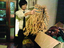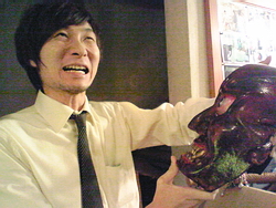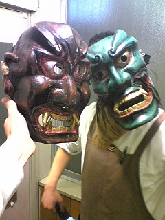 ☆今年もすでに打ち合わせなどが始まっておりまして、第一回の集まりが先日ありました。気楽会からは、昨年に引き続き、マックス、ハラダさん、ながはる、そして自分の4人が今のところ参加する予定です。1回目の打ち合わせでは、倉庫から、今年の海神様で使う備品の確認作業をしたんですが、その中にはもちろん、昨年お世話になった鬼の面もありました!