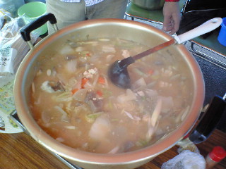 雪の舞う気仙沼、温かい鍋は大好評!