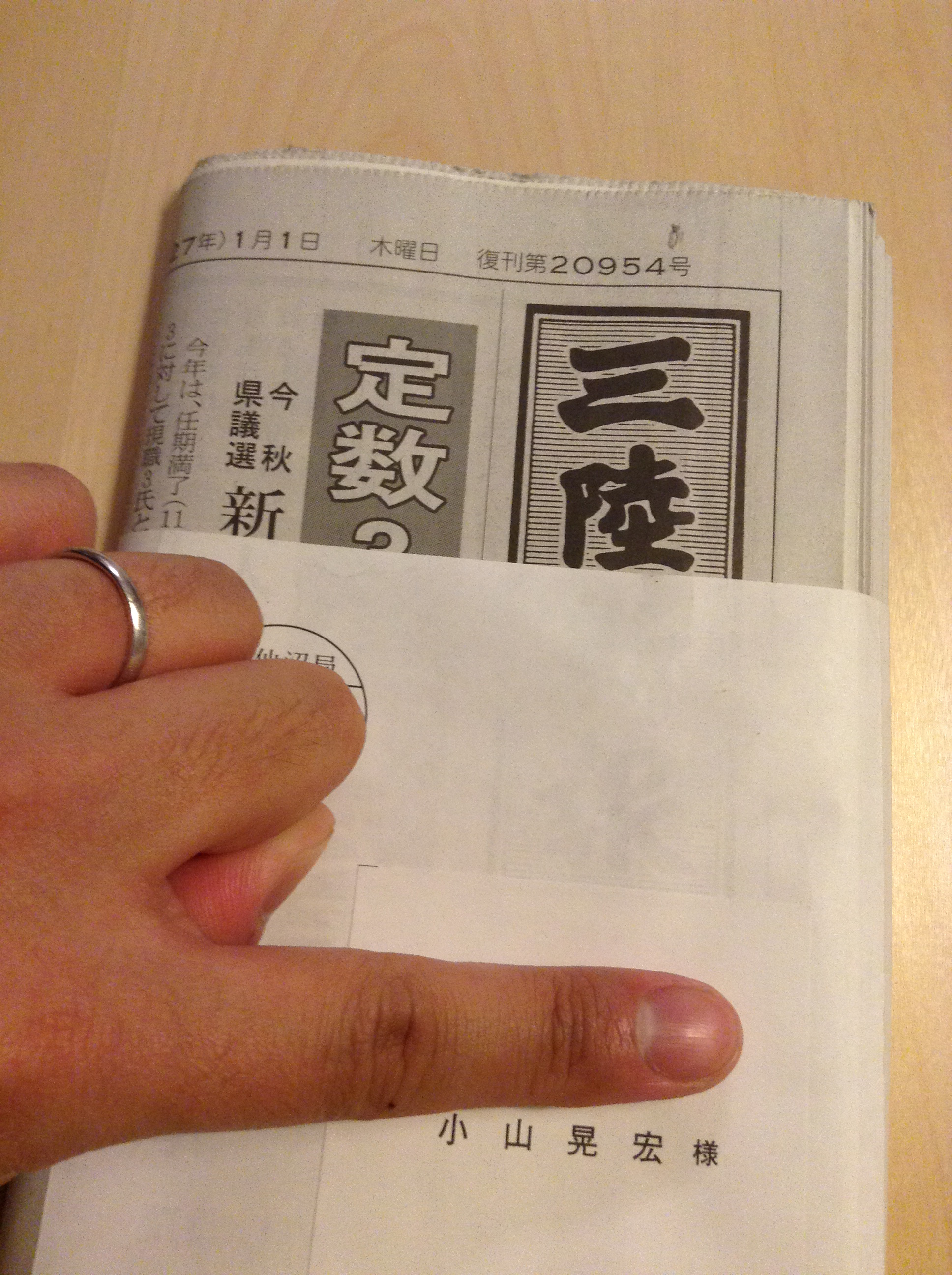 ピンと来ない方に説明しますが、郵送で届く三陸新報は基本的に1日遅れで届くんです。