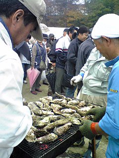 待ちに待った自分の番、焼きたての殻付き牡蠣がついに登場!プリッ、プリッの牡蠣を一気に口の中へ。。その瞬間、口の中に唐桑の海の香り、磯の味が広がったのでした。。