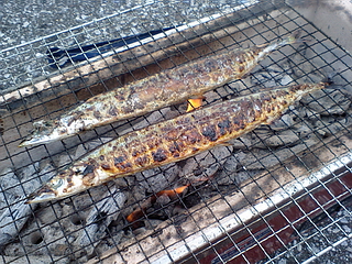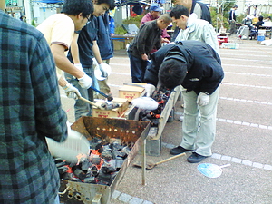 サンマ炭火焼きとホタテ炭火焼の準備の真っ最中でした。