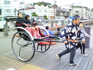 気仙沼の波止場を人力車で見るのもいいもんですね。