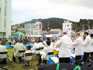 気仙沼名物のダブル攻撃で、大きな声で呼び込みをしなくても
