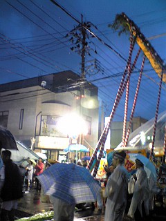 ☆僕は夕方から行ったんですが、朝から降り続くあいにくの雨模様の中、子供たちによる打ち囃子やよさこいソーラン、高さが地上10メートルある伝統のはしご昇り虎などが行われてました。自分はいつも仕事でお世話になっている商店街なので、顔なじみの方も多く、皆さん、雨という逆境をもろともせず、ずぶ濡れになりながら一生懸命まつりを盛り上げてました(^0^)/