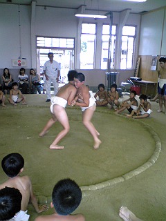 ☆ということで、今夜はJr.ネタなんだけど、自分も小さい頃、強烈に思い出として残っている事だったんで紹介したいと思いますっ。先週なんですが、小学一年になるJr.と気仙沼小向かいにある相撲場に行ってきました。なぜ相撲場?というと、今月24日に開かれる市内小学校相撲大会の一・二年生の部に、Jr.が学校の代表選手として選ばれ、その練習会に自分も付いて行ったんです(^^)。