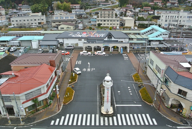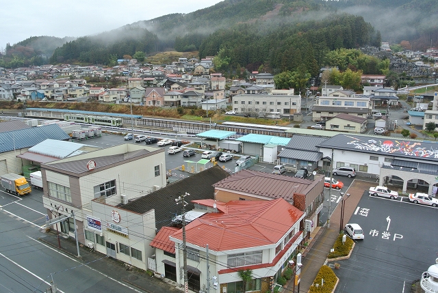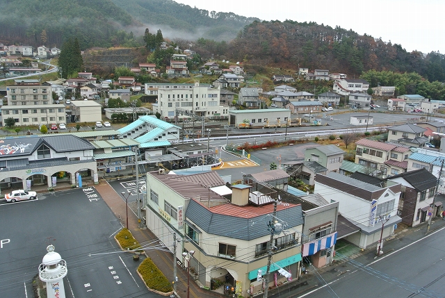 そしたら、窓から気仙沼駅を正面かつ上から望めて