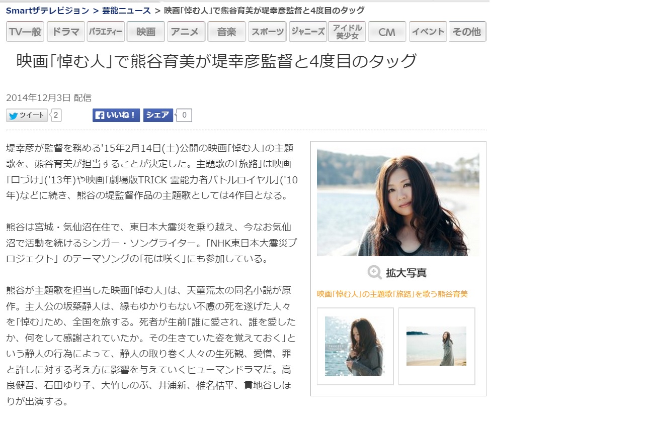 映画「悼む人」で熊谷育美が堤幸彦監督と4度目のタッグ