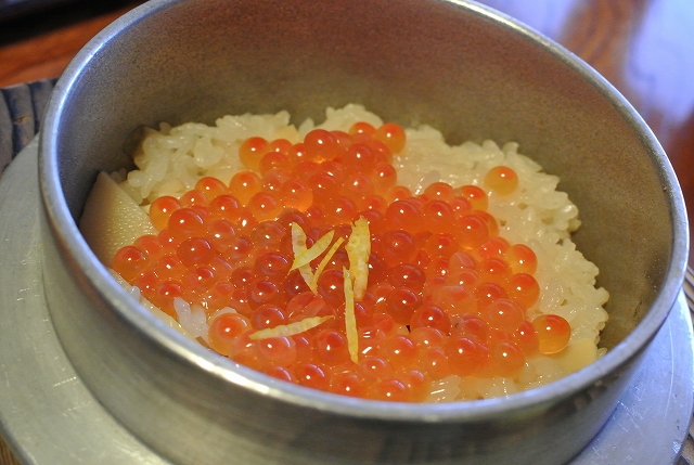 イクラはご飯を炊いたあとに乗せたようです。