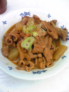 お昼は名物ホルモン煮込みとおにぎりを食べ、