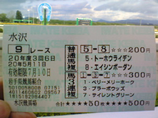 今度は真剣に(?)馬券を買って、祝杯を上げたいと思います