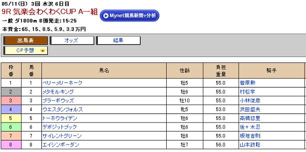 『気楽会わくわくCUP』の出走馬と枠順が確定しました。