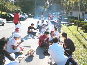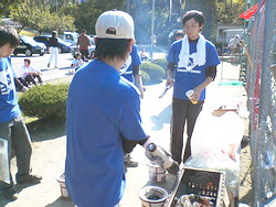 お昼には気楽会がホルモンを焼きました。