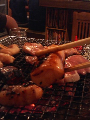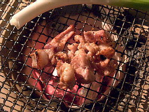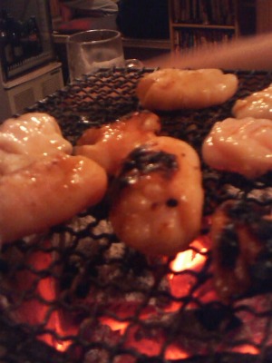 さっそく家に帰り、庭で炭を起こし、ホルモンを食します。