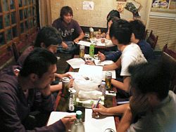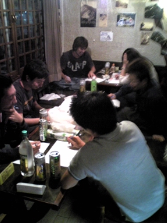 打ち上げ二次会では、田中の梟にて、