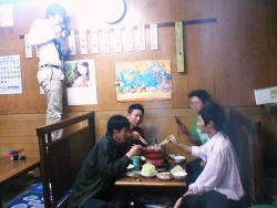 魚市場前【ホルモン道場】にて。