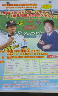 さて、今週末の2日土曜日なんですが、仙台市宮城野区にある仙台市民球場で、欽ちゃんの茨城ゴールデンゴールズ対元横浜ベイスターズの大魔神こと佐々木率いる東北福祉大OBマスタング戦があるんです。