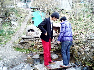 湧き出る水を柄杓ですくい、口に含むと甘くトロっとした味は格別です。