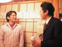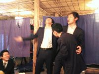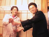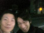 深夜に男二人、寄り添って写真撮ってます。