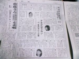 ☆さて、皆さんにお知らせがあります。うちの新聞(三陸)でいま連載している「気仙沼生まれのフリーアナウンサー」。そこになんと!気楽会が紹介されるのです。明日付の第8回で、岩手佳代子さんが気楽会のことをPRしてくれています。詳しくは新聞を御覧ください。