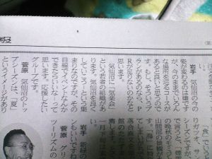☆うちの新聞に、気楽会の名前が紹介されるのは初めてだし、取材したわけでもないのに岩手さんの口から紹介されたことは、“一読者”としても素直に嬉しいっすね。。今年はもっと紹介され、市内の一人でも多くの若い人たちに知ってもらえるよう、僕も陰ながら頑張ります!!